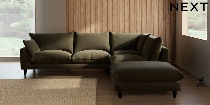 7.2.10 Noa Deep Relaxed Sit Large Open End Corner Chaise - Right Hand Fine Chenille Easy Clean Dark Moss Green High Leg - Dark | Made Click here to use our website with more accessibility support, for example screen readers
