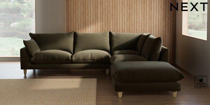 7.2.10 Noa Deep Relaxed Sit Large Open End Corner Chaise - Right Hand Fine Chenille Easy Clean Dark Moss Green High Leg - Light | Made Click here to use our website with more accessibility support, for example screen readers