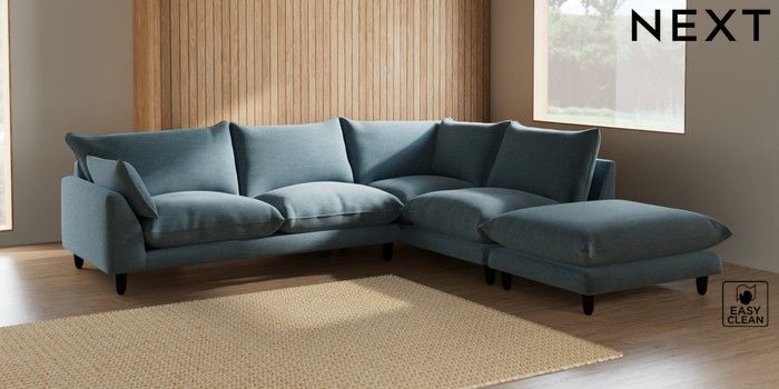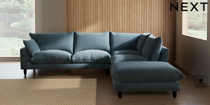 7.2.10 Noa Deep Relaxed Sit Large Open End Corner Chaise - Right Hand Fine Chenille Easy Clean Mid Blue High Leg - Dark | Made Click here to use our website with more accessibility support, for example screen readers