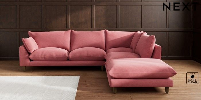 7.2.10 Noa Deep Relaxed Sit Large Open End Corner Chaise - Right Hand Fine Chenille Easy Clean Mid Pink High Leg - Mid | Made Click here to use our website with more accessibility support, for example screen readers