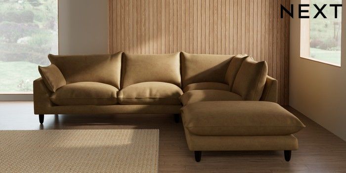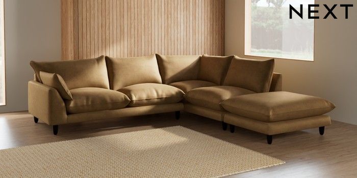 7.2.10 Noa Deep Relaxed Sit Large Open End Corner Chaise - Right Hand Luxe Chenille Honey Yellow High Leg - Dark | Made Click here to use our website with more accessibility support, for example screen readers