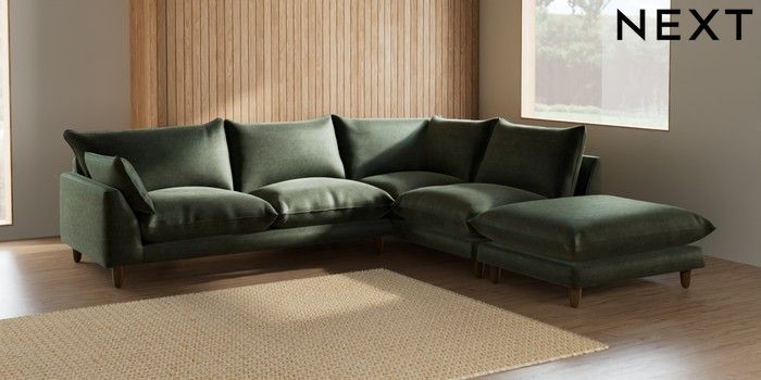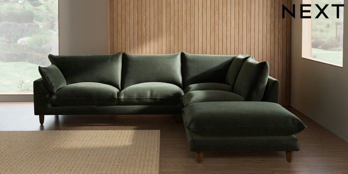 7.2.10 Noa Deep Relaxed Sit Large Open End Corner Chaise - Right Hand Luxe Chenille Mid Green High Leg - Mid | Made Click here to use our website with more accessibility support, for example screen readers