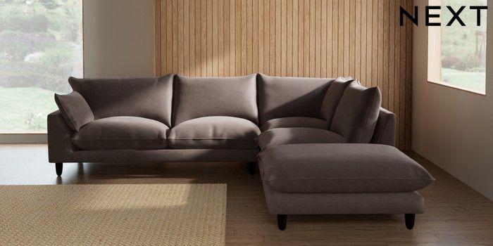 7.2.10 Noa Deep Relaxed Sit Large Open End Corner Chaise - Right Hand Luxe Chenille Mink Brown High Leg - Dark | Made Click here to use our website with more accessibility support, for example screen readers