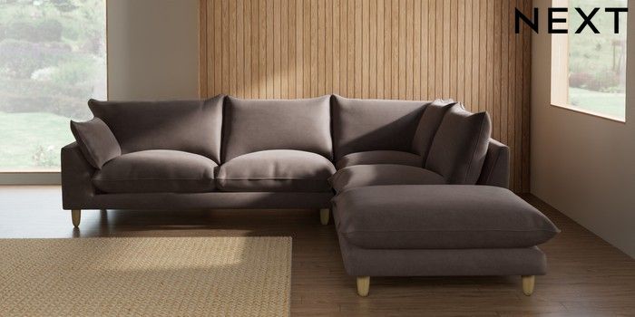 7.2.10 Noa Deep Relaxed Sit Large Open End Corner Chaise - Right Hand Luxe Chenille Mink Brown High Leg - Light | Made Click here to use our website with more accessibility support, for example screen readers