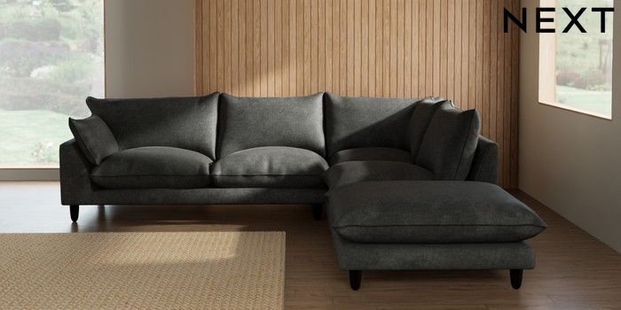 7.2.10 Noa Deep Relaxed Sit Large Open End Corner Chaise - Right Hand Plush Chenille Dark Grey High Leg - Dark | Made Click here to use our website with more accessibility support, for example screen readers