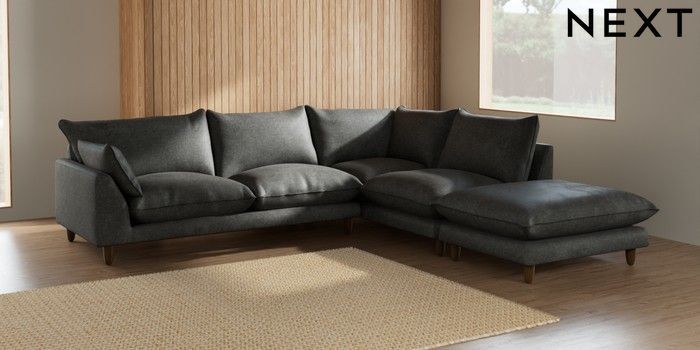 7.2.10 Noa Deep Relaxed Sit Large Open End Corner Chaise - Right Hand Plush Chenille Dark Grey High Leg - Mid | Made Click here to use our website with more accessibility support, for example screen readers