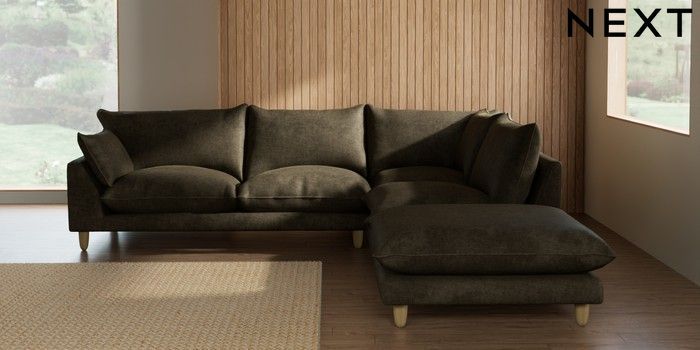 7.2.10 Noa Deep Relaxed Sit Large Open End Corner Chaise - Right Hand Plush Chenille Moss Green High Leg - Light | Made Click here to use our website with more accessibility support, for example screen readers