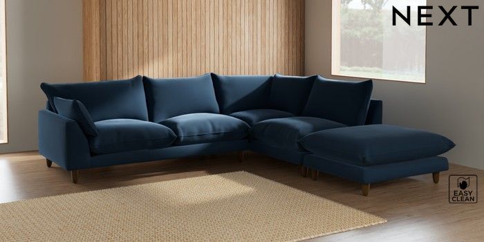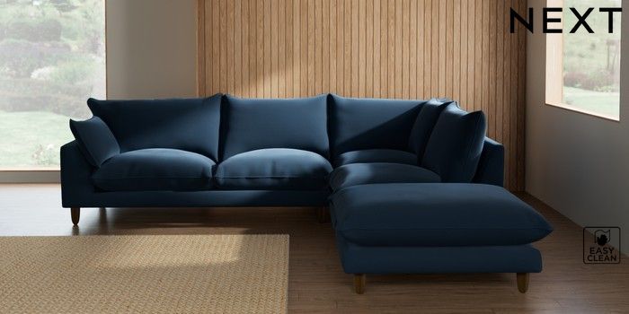 7.2.10 Noa Deep Relaxed Sit Large Open End Corner Chaise - Right Hand Plush Velvet Easy Clean Airforce Blue High Leg - Mid | Made Click here to use our website with more accessibility support, for example screen readers