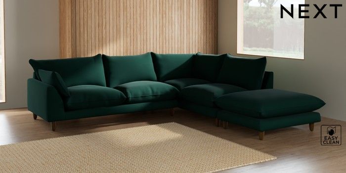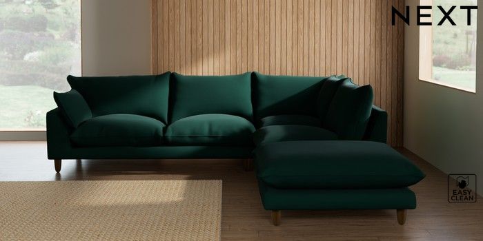 7.2.10 Noa Deep Relaxed Sit Large Open End Corner Chaise - Right Hand Plush Velvet Easy Clean Bottle Green High Leg - Mid | Made Click here to use our website with more accessibility support, for example screen readers