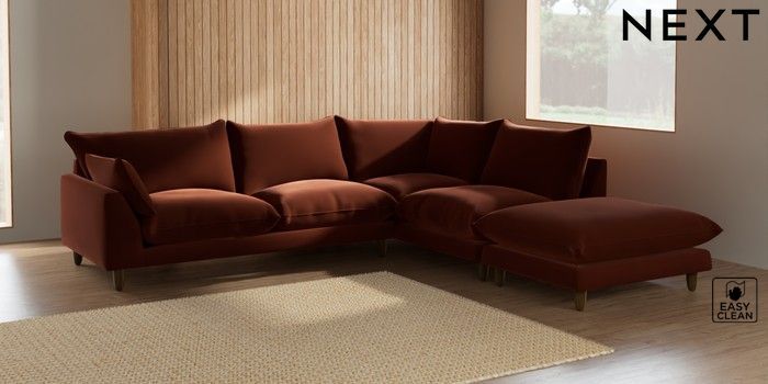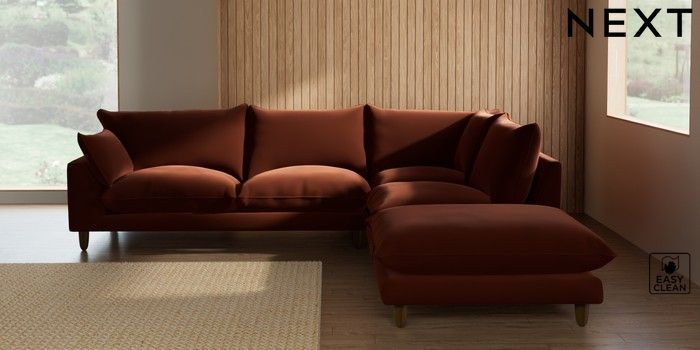 7.2.10 Noa Deep Relaxed Sit Large Open End Corner Chaise - Right Hand Plush Velvet Easy Clean Ginger Orange High Leg - Mid | Made Click here to use our website with more accessibility support, for example screen readers