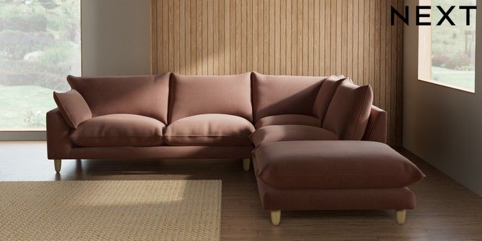 7.2.10 Noa Deep Relaxed Sit Large Open End Corner Chaise - Right Hand Relaxed Linen Look Light Rust Brown High Leg - Light | Made Click here to use our website with more accessibility support, for example screen readers