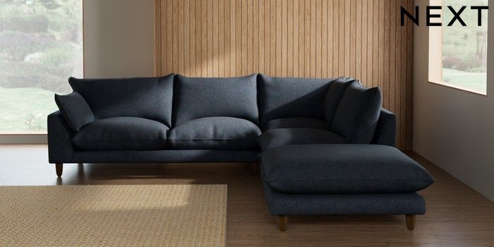7.2.10 Noa Deep Relaxed Sit Large Open End Corner Chaise - Right Hand Tweedy Chenille Navy Blue High Leg - Mid | Made Click here to use our website with more accessibility support, for example screen readers