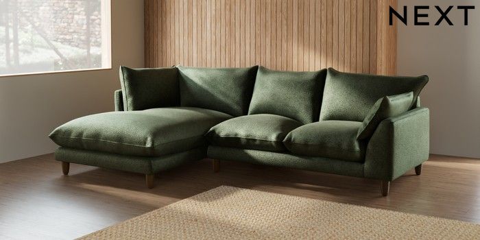 7.2.10 Noa Deep Relaxed Sit Medium Corner Chaise - Left Hand Boucle Chenille Dark Moss Green High Leg - Dark | Made Click here to use our website with more accessibility support, for example screen readers