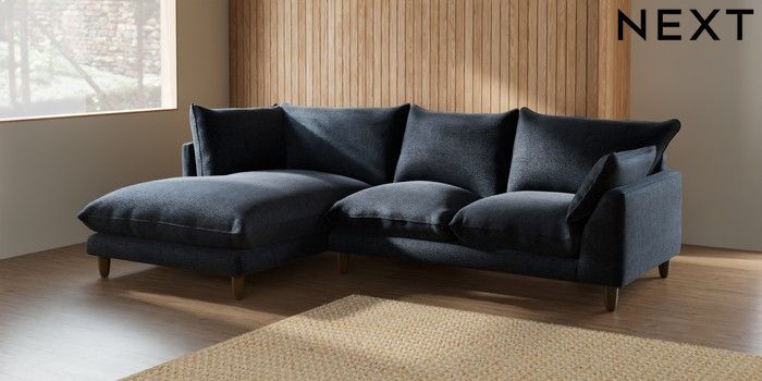 7.2.10 Noa Deep Relaxed Sit Medium Corner Chaise - Left Hand Boucle Chenille Dark Slate Blue High Leg - Dark | Made Click here to use our website with more accessibility support, for example screen readers