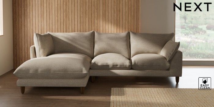 7.2.10 Noa Deep Relaxed Sit Medium Corner Chaise - Left Hand Boucle Weave Easy Clean Dark Natural High Leg - Light | Made Click here to use our website with more accessibility support, for example screen readers
