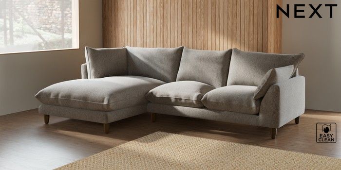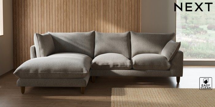 7.2.10 Noa Deep Relaxed Sit Medium Corner Chaise - Left Hand Chunky Boucle Easy Clean Dove High Leg - Dark | Made Click here to use our website with more accessibility support, for example screen readers