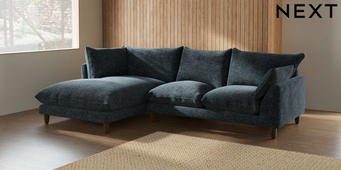 7.2.10 Noa Deep Relaxed Sit Medium Corner Chaise - Left Hand Chunky Chenille Dark Navy Blue High Leg - Mid | Made Click here to use our website with more accessibility support, for example screen readers
