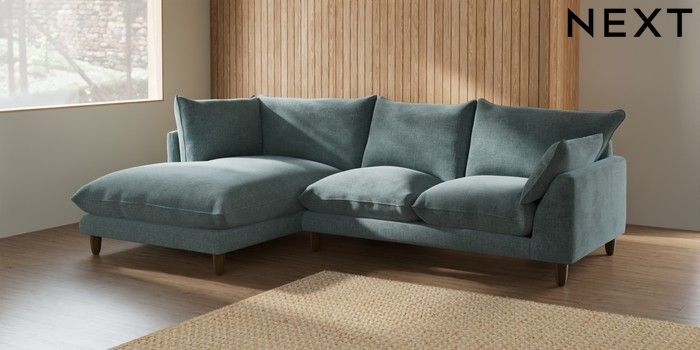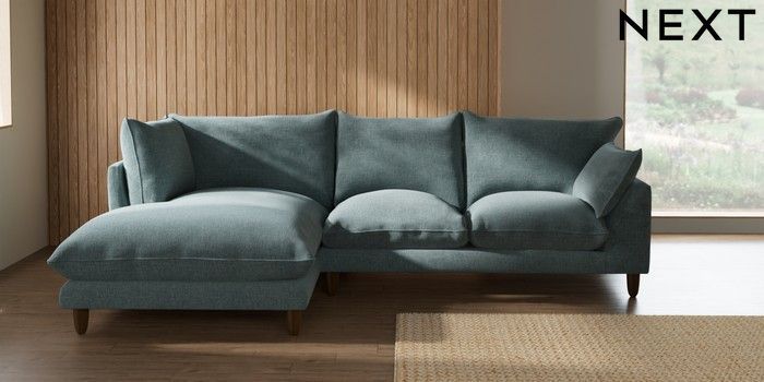 7.2.10 Noa Deep Relaxed Sit Medium Corner Chaise - Left Hand Chunky Chenille Light Teal Green High Leg - Light | Made Click here to use our website with more accessibility support, for example screen readers