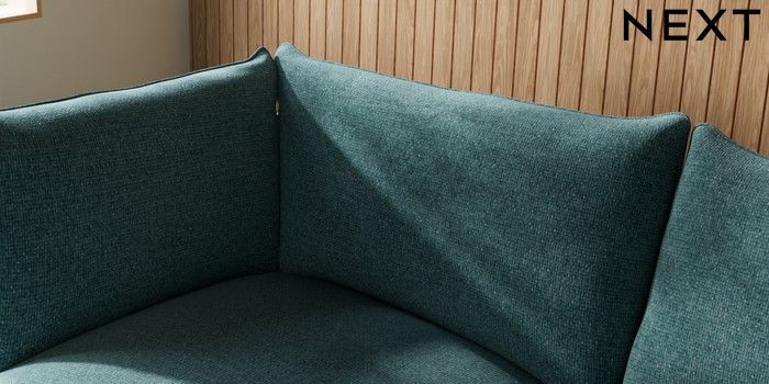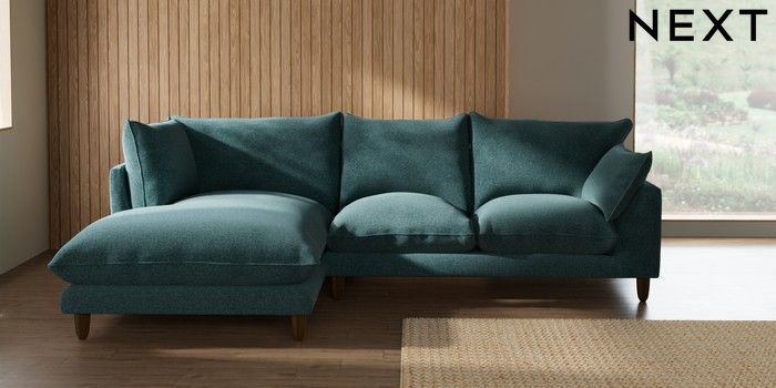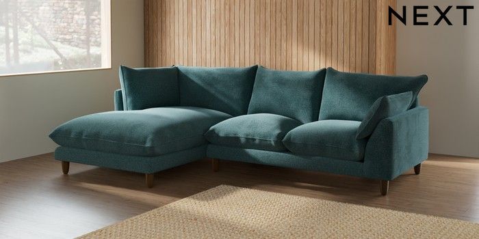 7.2.10 Noa Deep Relaxed Sit Medium Corner Chaise - Left Hand Chunky Chenille Mid Teal Green High Leg - Light | Made Click here to use our website with more accessibility support, for example screen readers