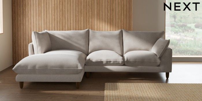 7.2.10 Noa Deep Relaxed Sit Medium Corner Chaise - Left Hand Chunky Chenille Oyster High Leg - Light | Made Click here to use our website with more accessibility support, for example screen readers