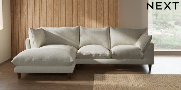 7.2.10 Noa Deep Relaxed Sit Medium Corner Chaise - Left Hand Chunky Texture Oyster High Leg - Light | Made Click here to use our website with more accessibility support, for example screen readers