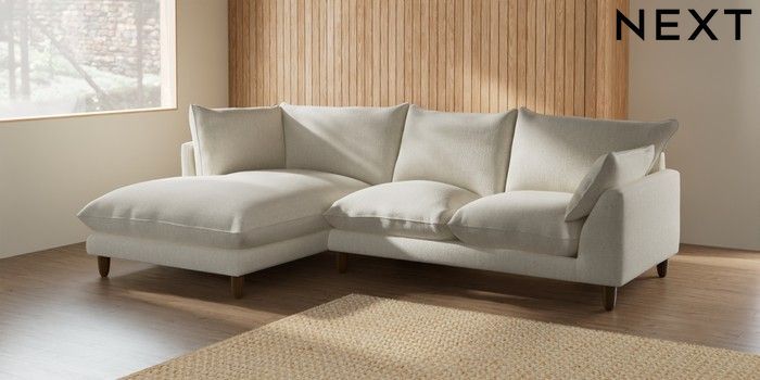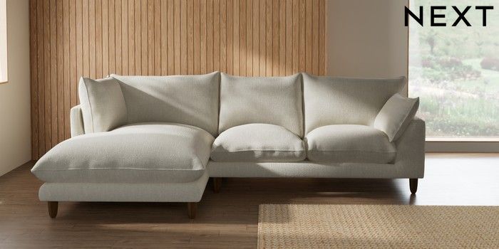 7.2.10 Noa Deep Relaxed Sit Medium Corner Chaise - Left Hand Chunky Texture Oyster High Leg - Mid | Made Click here to use our website with more accessibility support, for example screen readers