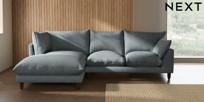 7.2.10 Noa Deep Relaxed Sit Medium Corner Chaise - Left Hand Chunky Weave Mid Blue High Leg - Light | Made Click here to use our website with more accessibility support, for example screen readers