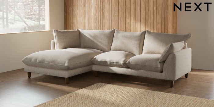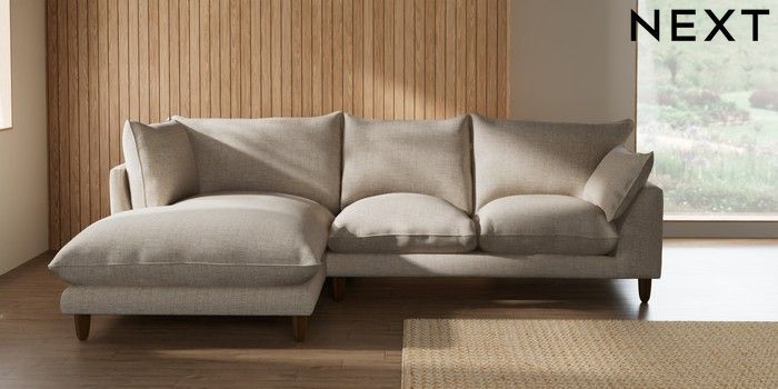 7.2.10 Noa Deep Relaxed Sit Medium Corner Chaise - Left Hand Chunky Weave Mid Natural High Leg - Light | Made Click here to use our website with more accessibility support, for example screen readers