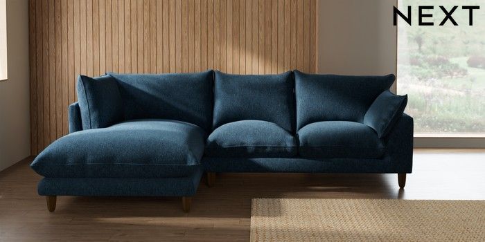 7.2.10 Noa Deep Relaxed Sit Medium Corner Chaise - Left Hand Cotswold Chenille Dark Blue High Leg - Light | Made Click here to use our website with more accessibility support, for example screen readers