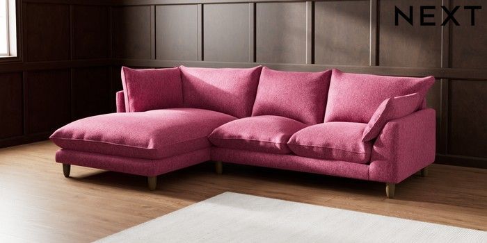 7.2.10 Noa Deep Relaxed Sit Medium Corner Chaise - Left Hand Cotswold Chenille Dark Raspberry Pink High Leg - Light | Made Click here to use our website with more accessibility support, for example screen readers