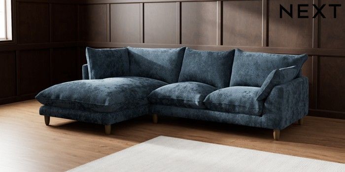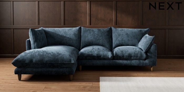 7.2.10 Noa Deep Relaxed Sit Medium Corner Chaise - Left Hand Distressed Velour Midnight Blue High Leg - Mid | Made Click here to use our website with more accessibility support, for example screen readers