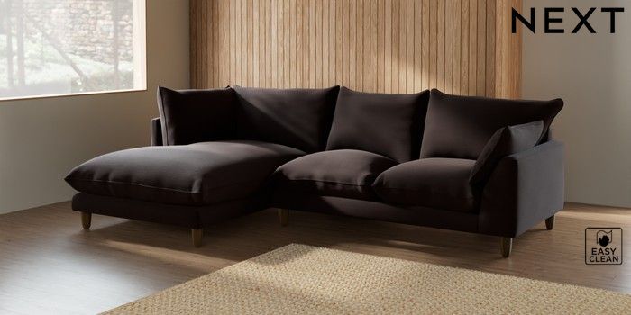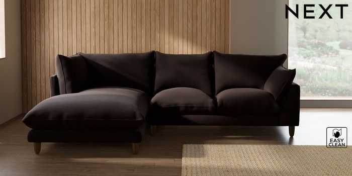 7.2.10 Noa Deep Relaxed Sit Medium Corner Chaise - Left Hand Fine Chenille Easy Clean Chocolate Brown High Leg - Dark | Made Click here to use our website with more accessibility support, for example screen readers
