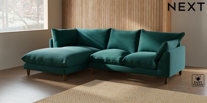 7.2.10 Noa Deep Relaxed Sit Medium Corner Chaise - Left Hand Fine Chenille Easy Clean Dark Juniper Green High Leg - Dark | Made Click here to use our website with more accessibility support, for example screen readers