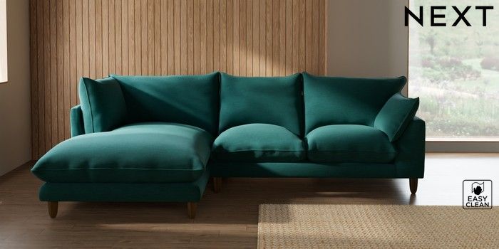 7.2.10 Noa Deep Relaxed Sit Medium Corner Chaise - Left Hand Fine Chenille Easy Clean Dark Juniper Green High Leg - Mid | Made Click here to use our website with more accessibility support, for example screen readers