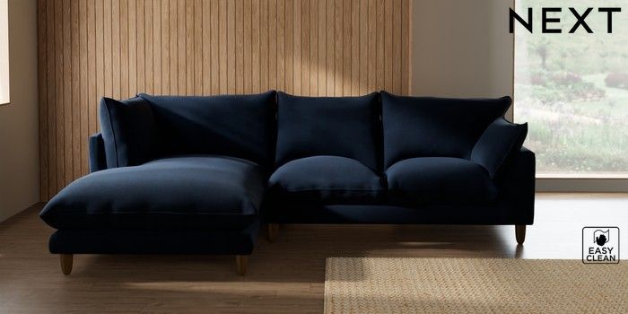7.2.10 Noa Deep Relaxed Sit Medium Corner Chaise - Left Hand Fine Chenille Easy Clean Dark Navy Blue High Leg - Dark | Made Click here to use our website with more accessibility support, for example screen readers