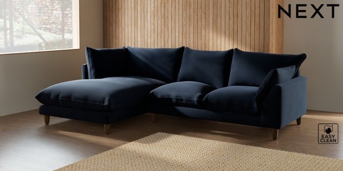 7.2.10 Noa Deep Relaxed Sit Medium Corner Chaise - Left Hand Fine Chenille Easy Clean Dark Navy Blue High Leg - Light | Made Click here to use our website with more accessibility support, for example screen readers