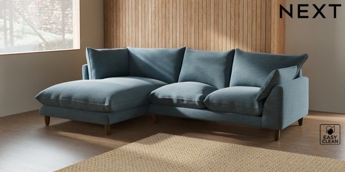7.2.10 Noa Deep Relaxed Sit Medium Corner Chaise - Left Hand Fine Chenille Easy Clean Mid Blue High Leg - Mid | Made Click here to use our website with more accessibility support, for example screen readers