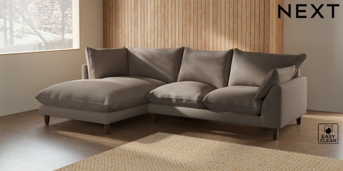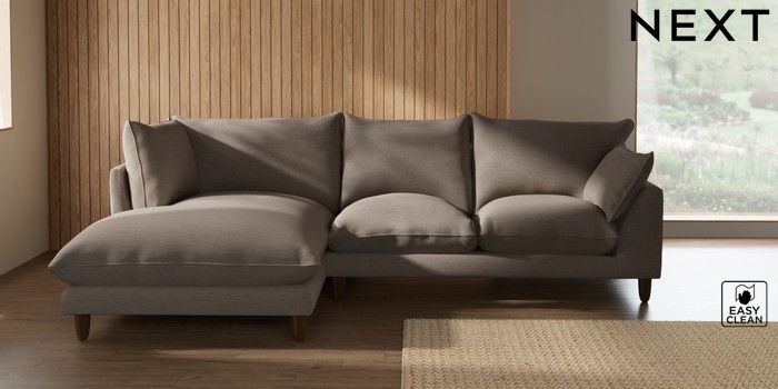 7.2.10 Noa Deep Relaxed Sit Medium Corner Chaise - Left Hand Fine Chenille Easy Clean Mid Taupe Brown High Leg - Light | Made Click here to use our website with more accessibility support, for example screen readers