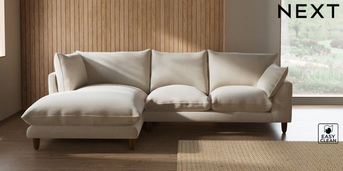 7.2.10 Noa Deep Relaxed Sit Medium Corner Chaise - Left Hand Fine Chenille Easy Clean Oyster High Leg - Mid | Made Click here to use our website with more accessibility support, for example screen readers