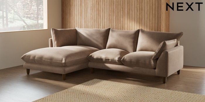 7.2.10 Noa Deep Relaxed Sit Medium Corner Chaise - Left Hand Luxe Chenille Mid Natural High Leg - Mid | Made Click here to use our website with more accessibility support, for example screen readers