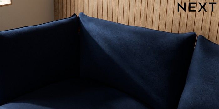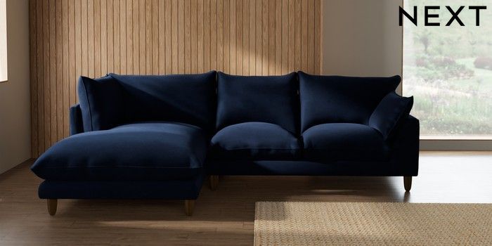 7.2.10 Noa Deep Relaxed Sit Medium Corner Chaise - Left Hand Luxe Chenille Navy Blue High Leg - Light | Made Click here to use our website with more accessibility support, for example screen readers