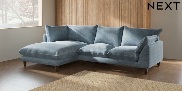 7.2.10 Noa Deep Relaxed Sit Medium Corner Chaise - Left Hand Plush Chenille Light Blue High Leg - Light | Made Click here to use our website with more accessibility support, for example screen readers
