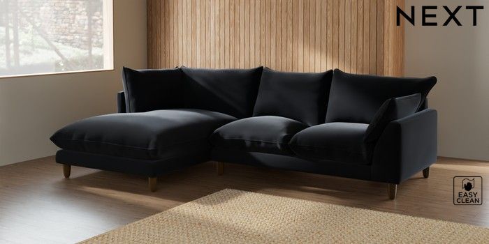 7.2.10 Noa Deep Relaxed Sit Medium Corner Chaise - Left Hand Plush Velvet Easy Clean Charcoal Grey High Leg - Light | Made Click here to use our website with more accessibility support, for example screen readers