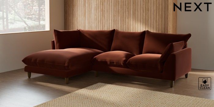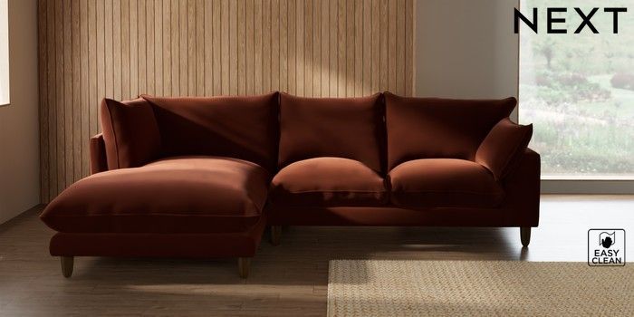 7.2.10 Noa Deep Relaxed Sit Medium Corner Chaise - Left Hand Plush Velvet Easy Clean Ginger Orange High Leg - Mid | Made Click here to use our website with more accessibility support, for example screen readers