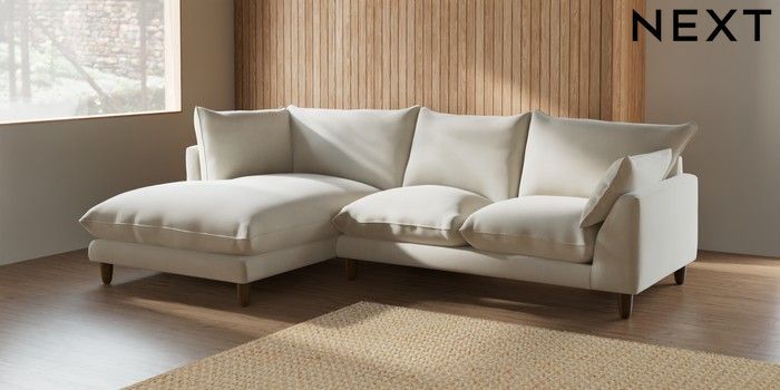 7.2.10 Noa Deep Relaxed Sit Medium Corner Chaise - Left Hand Relaxed Linen Look Oyster High Leg - Dark | Made Click here to use our website with more accessibility support, for example screen readers