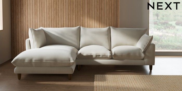 7.2.10 Noa Deep Relaxed Sit Medium Corner Chaise - Left Hand Relaxed Linen Look Oyster High Leg - Mid | Made Click here to use our website with more accessibility support, for example screen readers