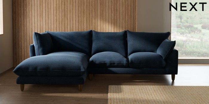 7.2.10 Noa Deep Relaxed Sit Medium Corner Chaise - Left Hand Ripple Chenille Dark Blue High Leg - Light | Made Click here to use our website with more accessibility support, for example screen readers