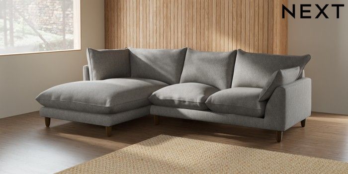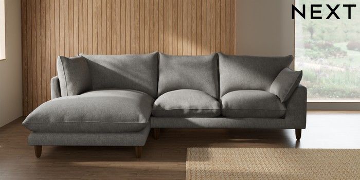 7.2.10 Noa Deep Relaxed Sit Medium Corner Chaise - Left Hand Tweedy Chenille Mid Grey High Leg - Mid | Made Click here to use our website with more accessibility support, for example screen readers