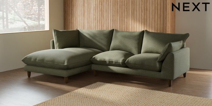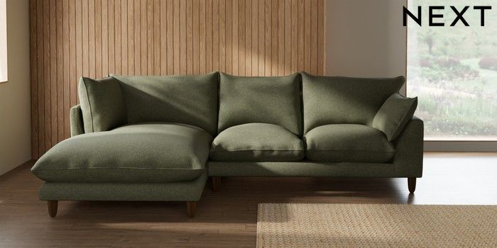 7.2.10 Noa Deep Relaxed Sit Medium Corner Chaise - Left Hand Tweedy Chenille Mid Moss Green High Leg - Mid | Made Click here to use our website with more accessibility support, for example screen readers