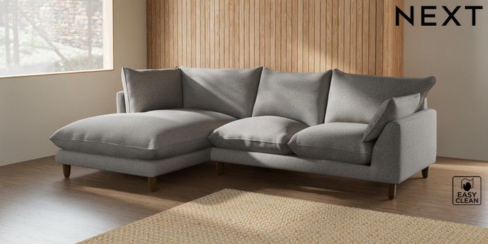 7.2.10 Noa Deep Relaxed Sit Medium Corner Chaise - Left Hand Woven Chenille Easy Clean Light Grey High Leg - Light | Made Click here to use our website with more accessibility support, for example screen readers
